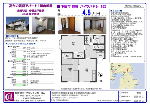 - 伊豆急下田駅 3.5Km、車で約10分。